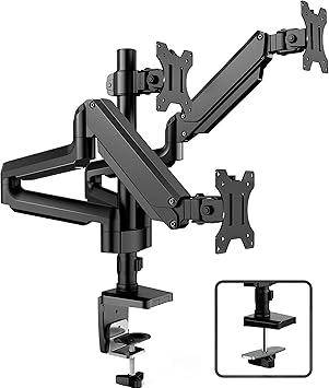 Mountpro triple monitor desk mount articulating gas spring monitor arm removable vesa mount desk stand with clamp and grommet base fits 13 to 27 inch lcd computer monitors vesa 75x75 100x100 4 3 out of 5 stars 670.