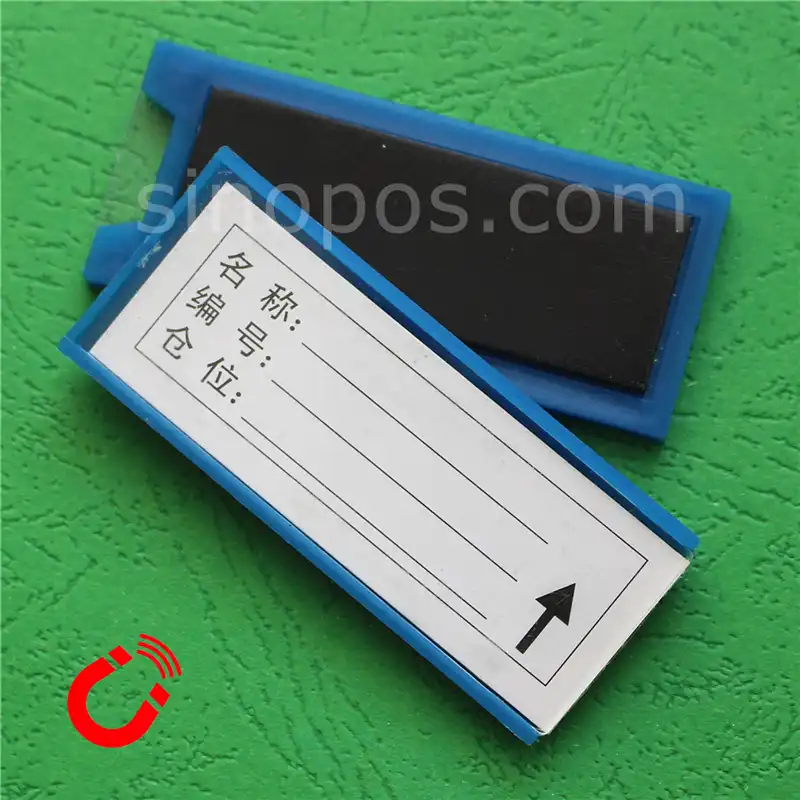 Wall hanging magnetic name tag holders.