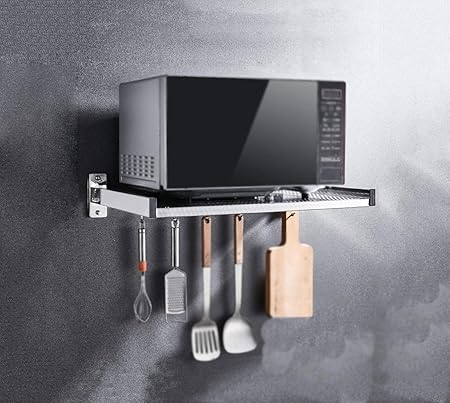 Microwave bracket wall mount foldable kitchen stretch oven stand shelf rack load 100 lb black.