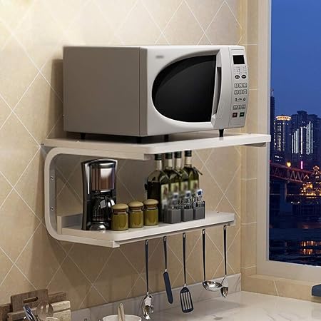 Eoocvt foldable stretch shelf rack wall mount kitchen microwave oven stand bracket.